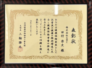 このたび、令和7年度「健康保険委員功労者表彰式」に、弊社社長の田村が出席し、長年の取組みが評価され表彰されました。